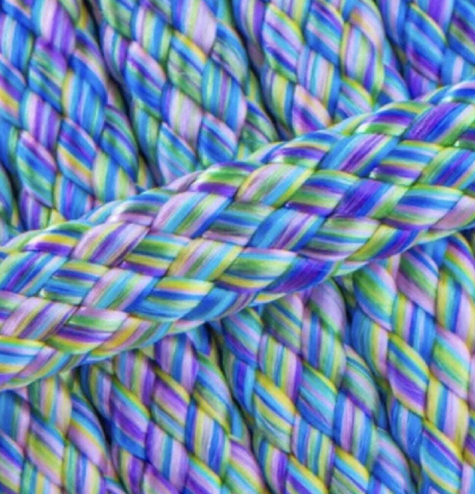 De kleuren van de neckrope zijn blauw, groenig. Dit touw is standaard 12 mm.