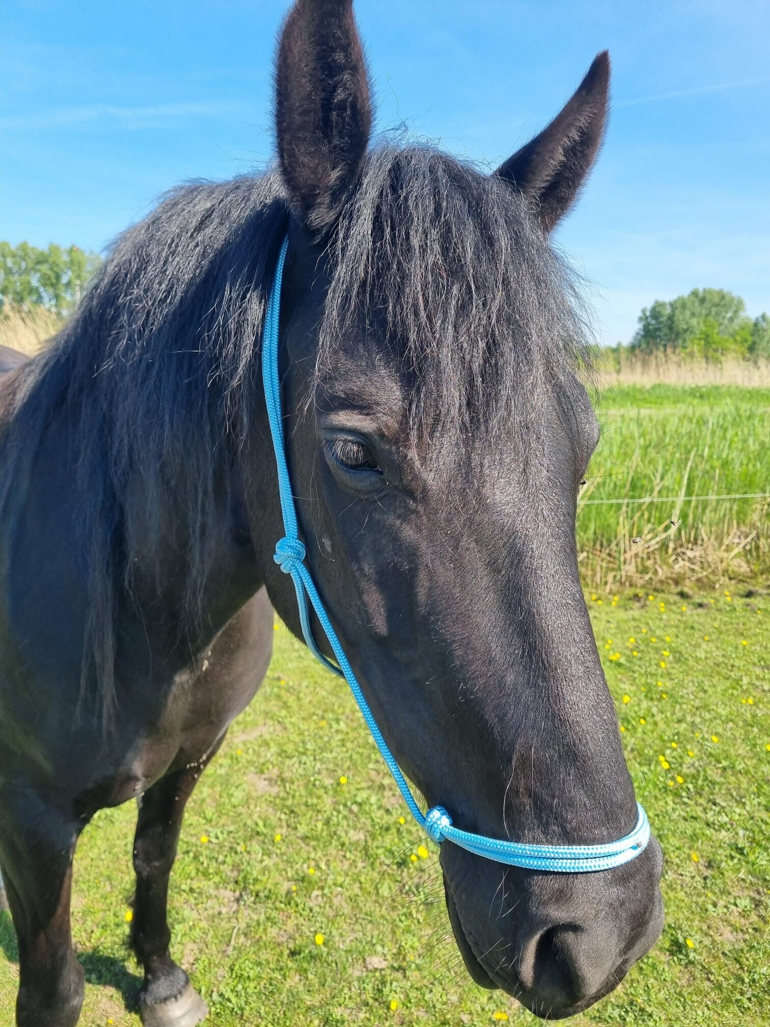 De kleur van het touwhalster op de foto is een voorbeeld, je moet zelf dus nog een kleur kiezen!