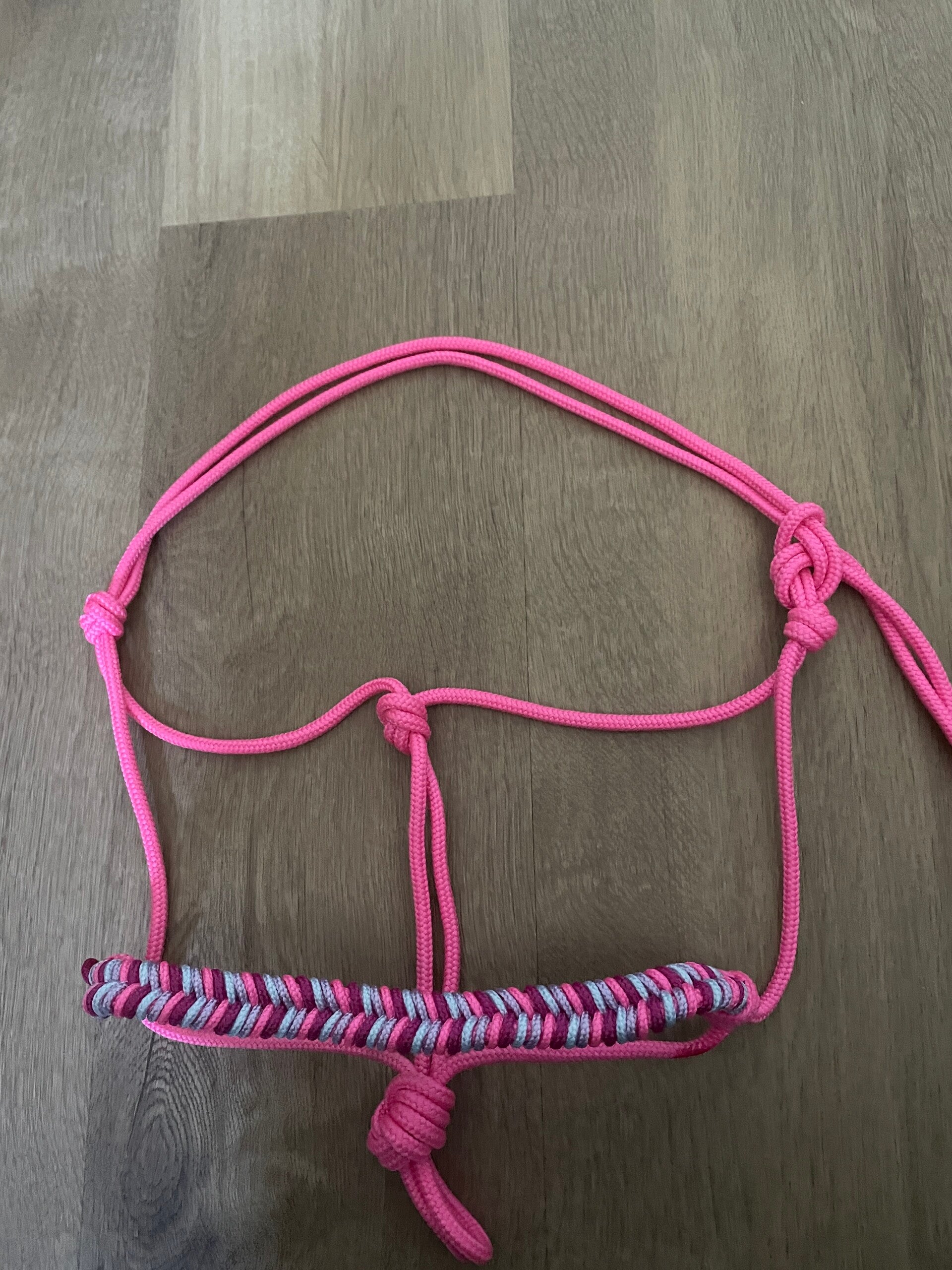 Touwhalster neon pink, lila paars, baby blauw en donkerroze.